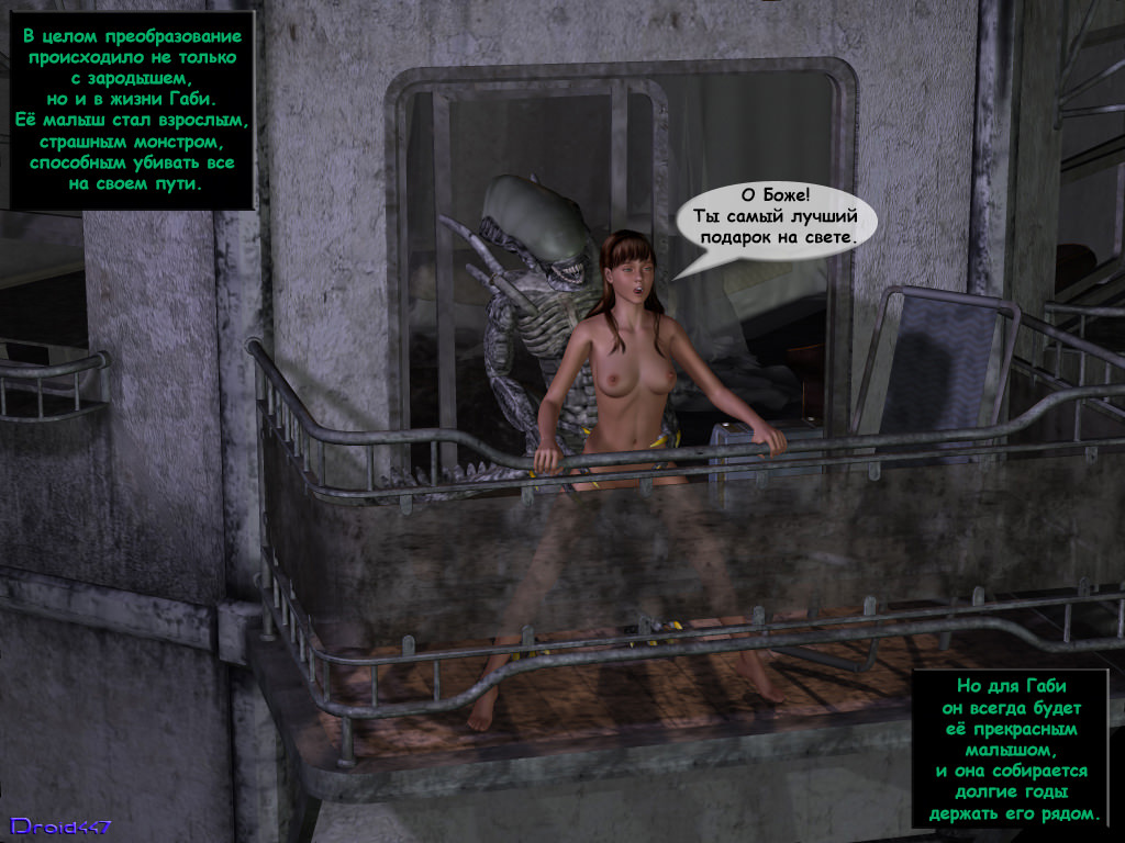 Экипаж космического корабля думал, что взял в плен инопланетянина, но на самом деле это был хитроумный план яйцеголового по добыче пиздятинки другой расы. Стоило ему остаться одному в лаборатории, как он тут же подкатил свои космические яйца к лаборантке. Оказалось, что низкорослый уродец в совершенстве владеет телепатией. Сисястая учёная в трансе отсосала пришельцу и дала во все остальные свои дырочки. Против своей воли она текла и кончала, радуя подопытного и вела себя так, будто настала её брачная ночь. Контакт с внеземной цивилизацией состоялся успешно! И если в фильмах космонавтов едят, то в этом случае просто обкончали.