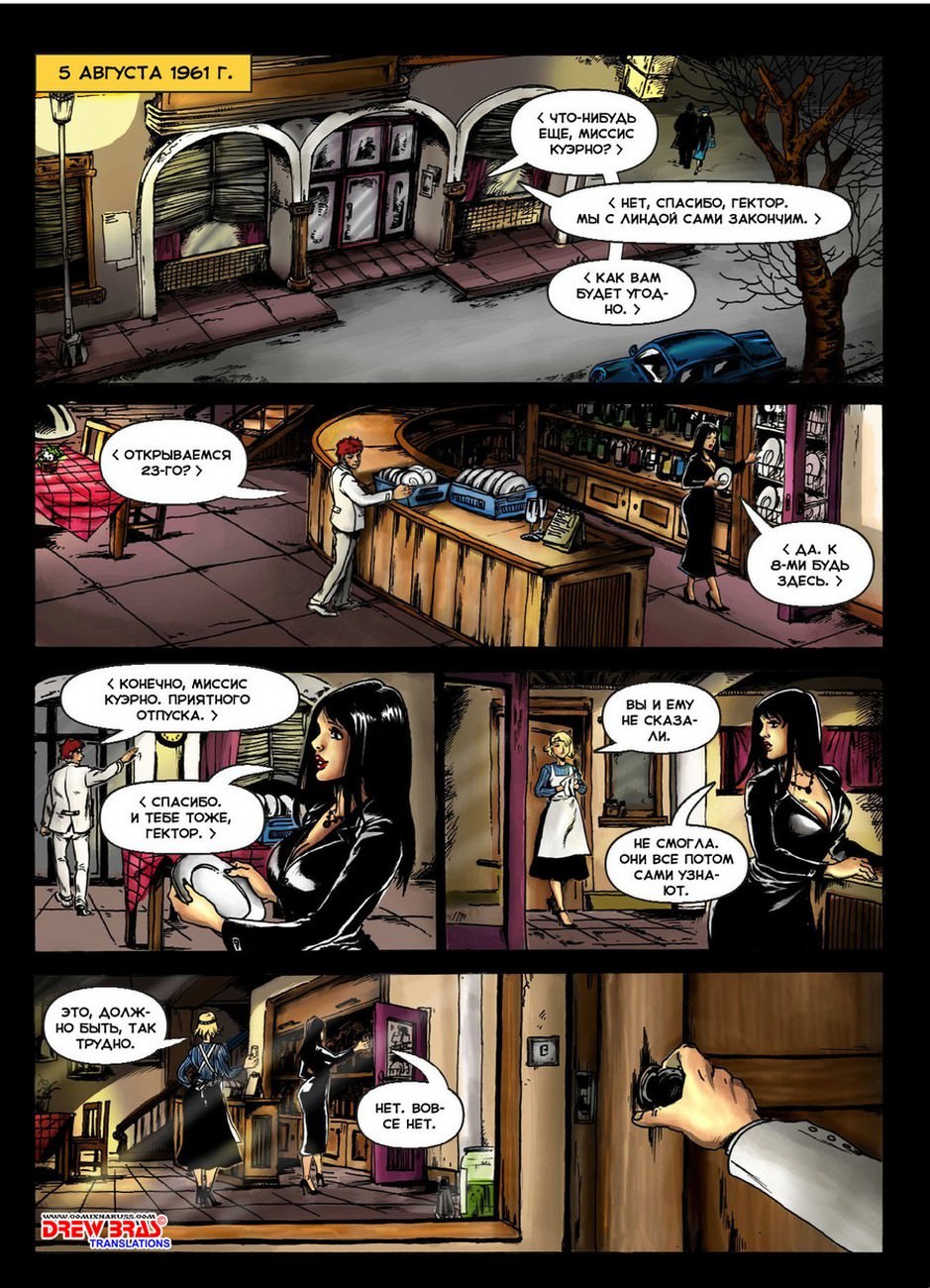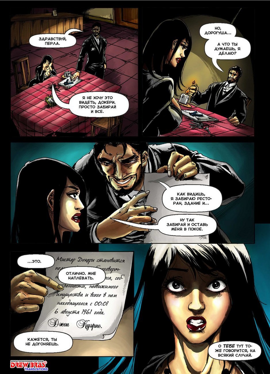 Красивая брюнетка миссис Куэрно (Перла) закрывает на сегодня ресторан, отпуская официанта Гектора, и с ней остается только посудомойщица Линда. Телочка знает, что сегодня вечером к ней должен заглянуть знакомый ее погибшего парня Джонни. Именно этот человек может оплатить кредит, выданный на ресторан, и именно ему должно достаться заведение, находящееся на грани банкротства. Когда в заведение приходят здоровяк Докери, чтобы забрать его у Перлы, оказывается, что ее служанка-развратница Линда уже трахалась с бизнесменом, и она берет у него в рот прямо перед миссис Куэрно. Невозможно предсказать, как повлияет на Перлу страстный секс мена и ее помощницы, и сможет ли изголодавшаяся вагина сисястой брюнетки остаться безучастной к таким событиям!