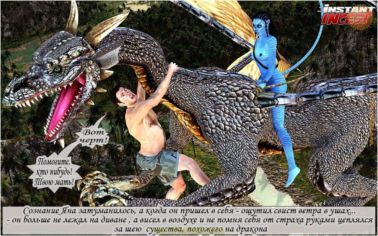 Ян в очередной раз устал на вечеринке и на утро после долгой пати не знает, чем себя занять, кроме как просмотром телевизора. По ящику идет блокбастер «Аватар», в ходе которого сисятся синекожая сучка летает на драконе и крушит врагов. Парень сам не замечает, как его охватывает дремота, и он уже сидит напротив этой бабенки Нин’Ад и беседует с ней. Бабенка, исполненная желаний, начинает ласкать пенис главного героя, тот мгновенно встает, и пара предается разврату. Теперь явь и сон будет реально сложно различить!