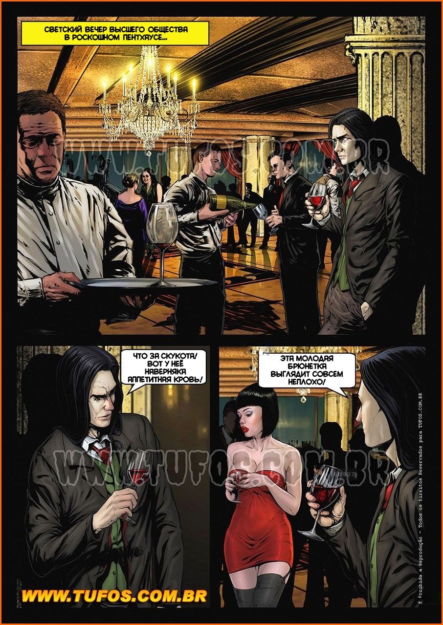 Даже граф Дракула иногда испытывает трудности. Познакомившись на светском вечере с сочной брюнеткой, он ведёт её в отель, чтобы прокусить ей шею и напиться горячей крови. Но та достаёт его вампирский член из штанов и начинает так умело сосать, что Дракула забывает об основной цели. И вместо того, чтобы поесть, он до самого рассвета трахается с горячей сучкой. Она хочет получить всё: и куни, и классический секс, и анальное проникновение. Голодный, но абсолютно удовлетворённый, он улетает в своё логово.