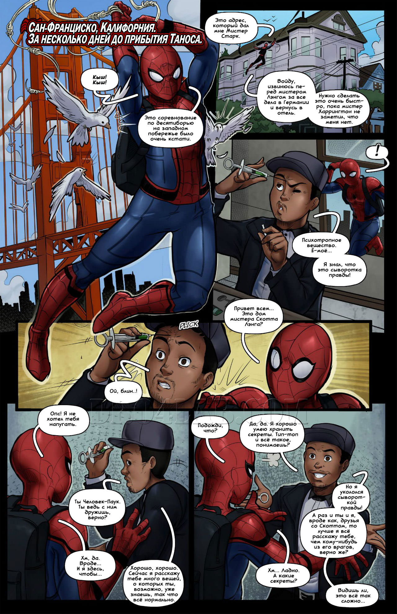 Питер Паркер забрался в дом Скотта Лэнга, чтобы попросить прощения за то, что было в Германии. Он подкрался так тихо, что от неожиданности Луис случайно вколол себе шприц с сывороткой правды, который он изучал в этот момент. Сыворотка подействовала моментально и Луис рассказал все, что знал о том, как Скотт Лэнг и его подружка Хоуп используют свои супер-способности для удовлетворения своих самых извращенных сексуальных фантазий