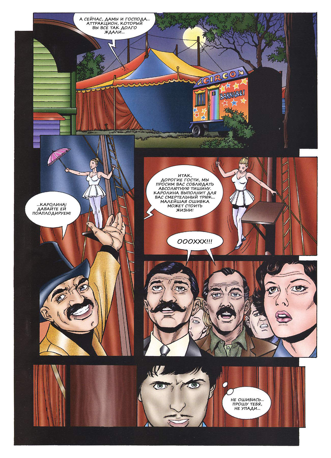 Пока прекрасная блондинка Каролина проходит под куполом цирка по тросу без страховки, и ей аплодируют поклонники, какой-то парень наблюдает за ней. Этот же молодой чувак оказывается за кулисами с жирной сисястой телкой, которая позволяет ему делать с собой все, что угодно. Каролина тоже оказывается за кулисами, и ее начинает домогаться грубый мужлан-ведущий. Девушка пытается отбиться от него, но владелец цирка таки загоняет свой паратрупер в промежность Каролины. В этот момент парень, который наблюдал за ней, ссорится с толстухой и идет к Каролине. Они все равно должны соединиться в экстазе!