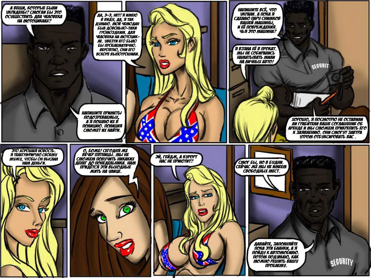 Роуз и Дикси — две красотки-подружки, которые каждый год отдыхают вместе. Девушки очень патриотичны, и поэтому крохотные бикини, в которых они расхаживают по пляжу, выполнены в стилистике американского флага. Этот узор привлекает к девушкам ещё больше внимания — в основном от чернокожжих мужчин, и излишний патриотизм подружек едва не становится причиной ссоры. Ситуация усугубляется нападением — машина взломана, вещи украдены, и вот две хрупкие красотки в одних купальниках, без денег и без способа уехать остаются среди кучи отдыхающих людей, основная масса которых — темнокожие.