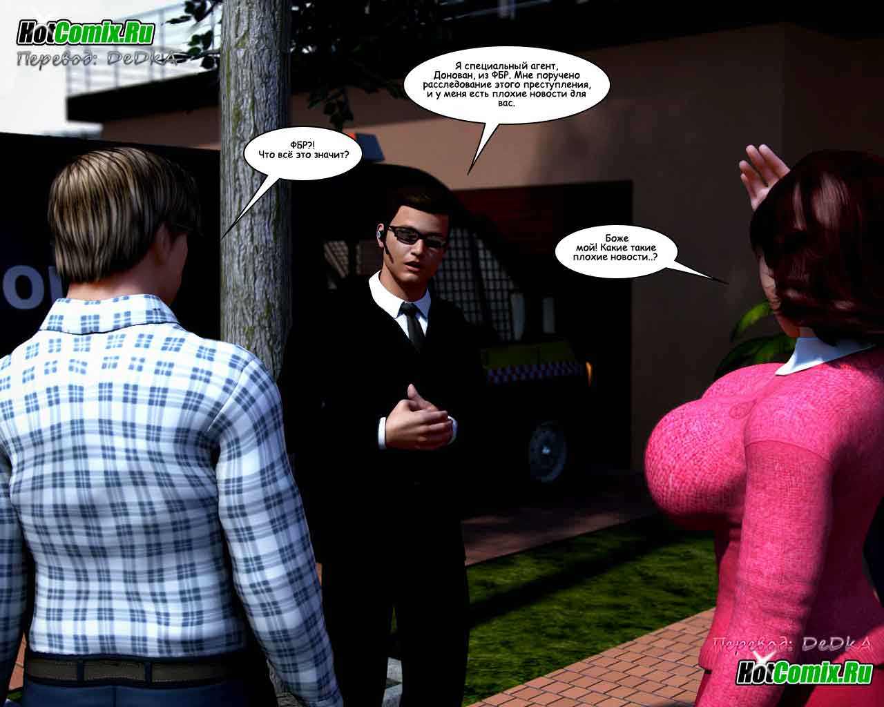 Увидев первую страницу комикса, Вы наверняка сразу подумали о том, что это очередной 3d комикс о инцесте, но это не совсем так, представляем вашему вниманию детективную порно-историю с весьма интересным сюжетом.