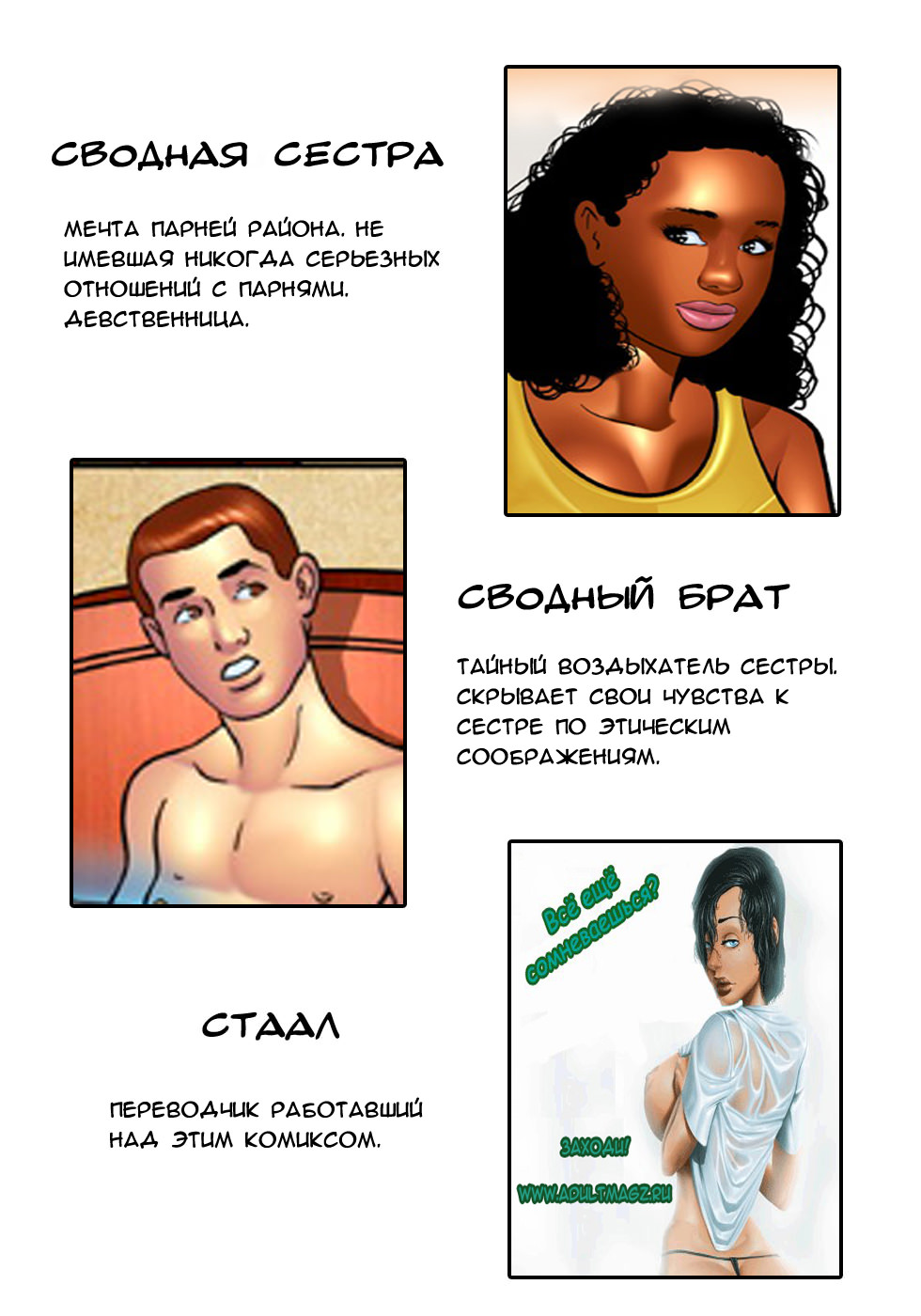 Когда в одном доме живет твоя сводная сестра – горячая темнокожая красотка, которую хотят все парни школы – ты волей-неволей начинаешь фантазировать о том, хороша ли она в постели. Наш герой гонит от себя эти развратные мысли – тем более, его сводная сестра ещё девственница! Однажды вечером юная красотка пришла в комнату к брату – по делу. Нечаянное касание, пара плавных движений – и кажется, сегодняшней ночью в этом доме произойдет что-то, что навсегда изменит отношения между братом и сестрой.
