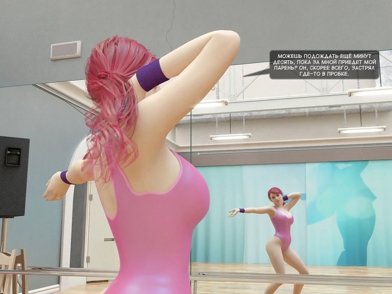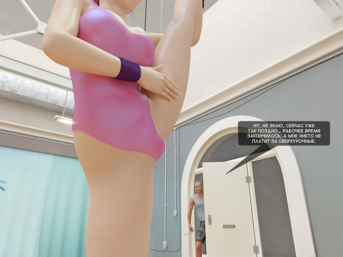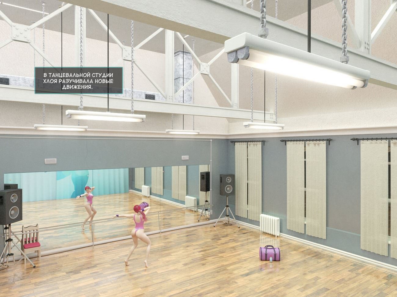 Хлоя задержалась в танцевальной студии в ожидании, когда ее парень придет за ней. Она решила скоротать время и разучить пару новых движений. В это время в зал зашел инструктор, который потребовал быстрее заканчивать тренировку, так как студия уже закрывалась. В этот момент, Хлоя подвернула ногу. Смекалистый инструктор решил воспользоваться беззащитным положением девушки и развести ее на секс до того, как ее бойфренд не приехал в студию. Хлоя поначалу пыталась отказываться, ну огромный член ее тренера не мог оставить девушку равнодушной.