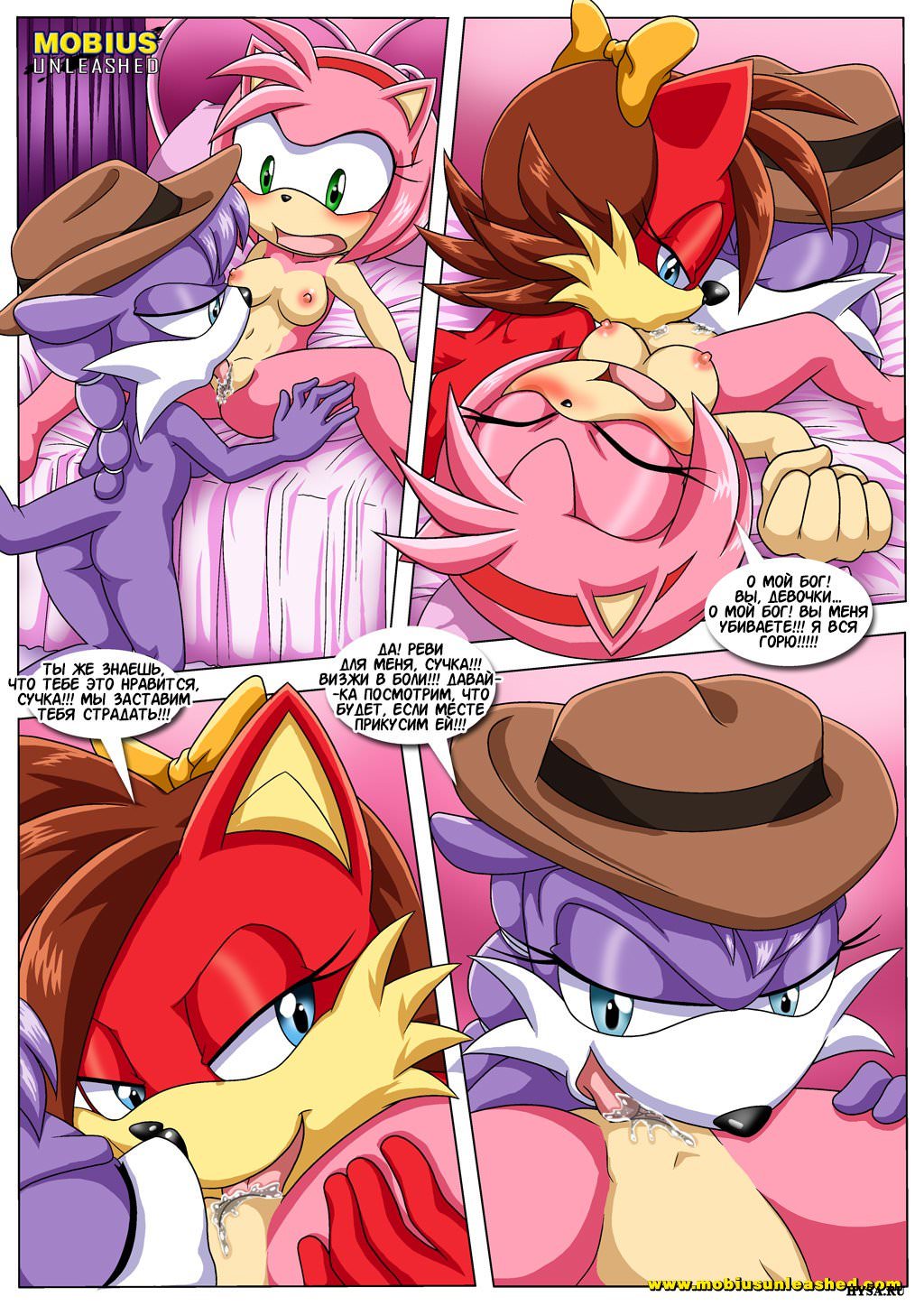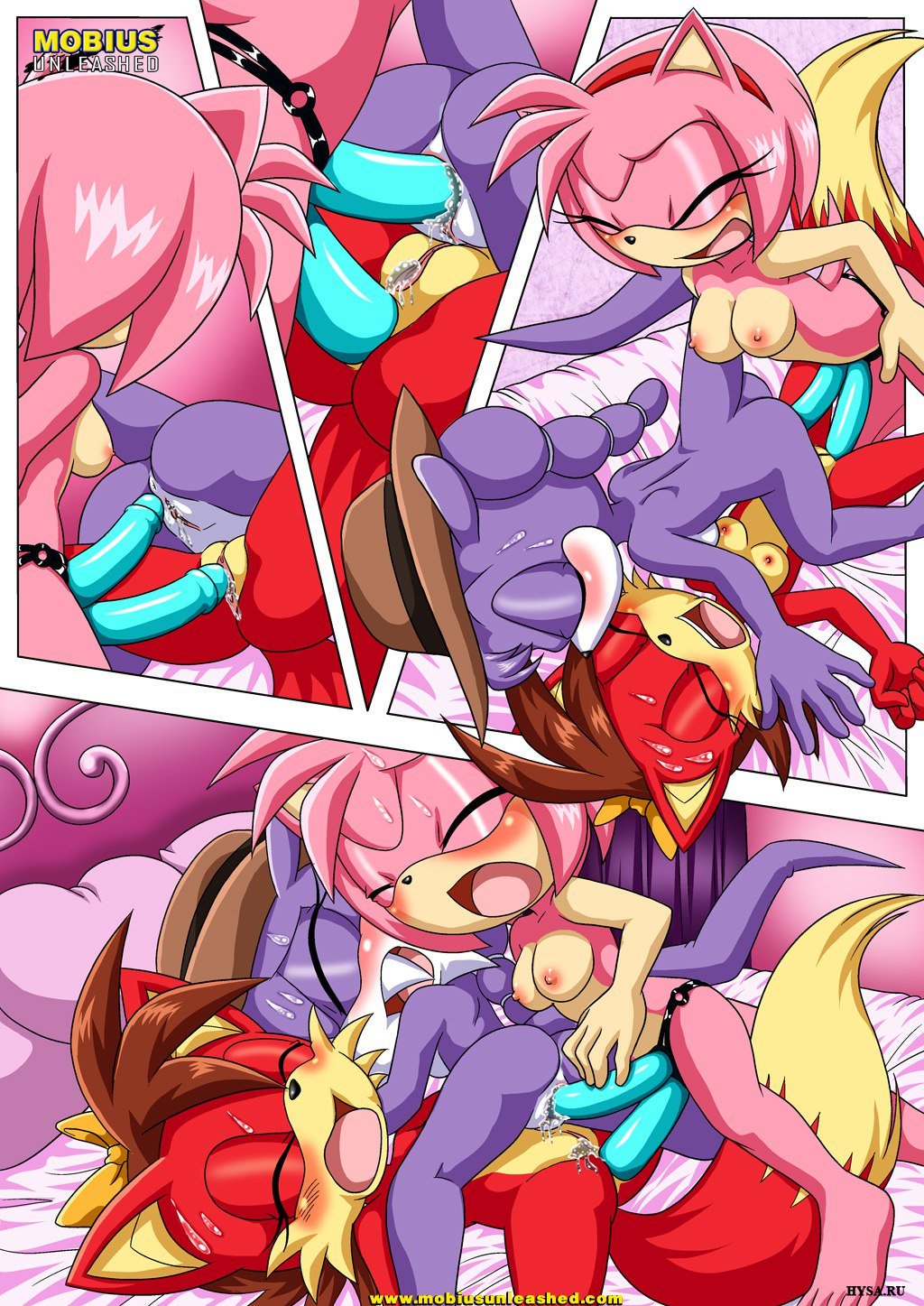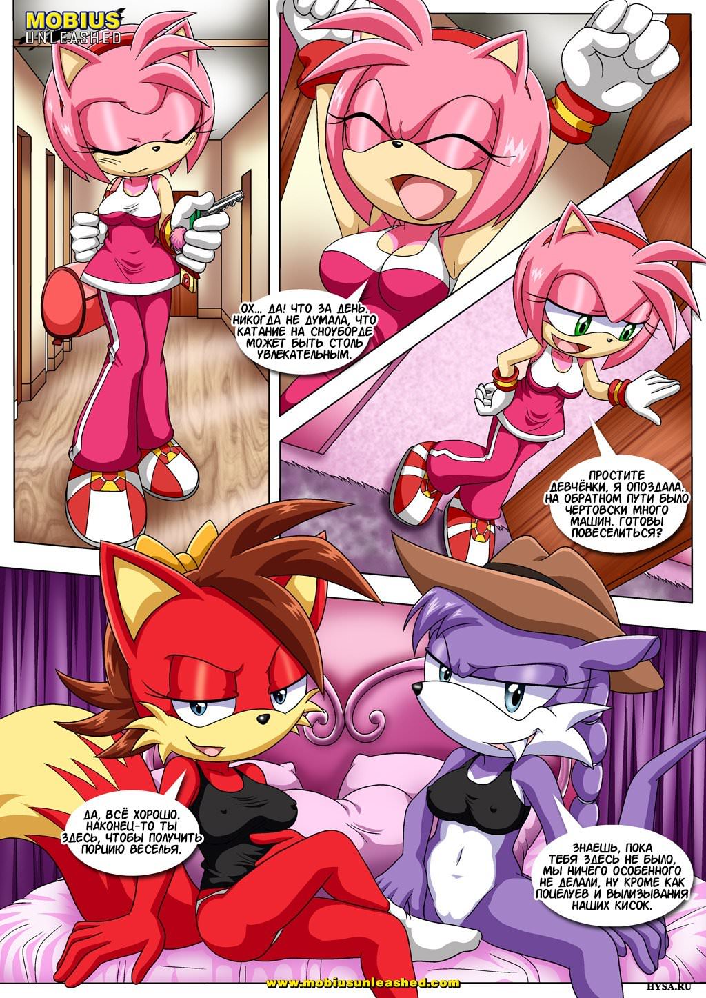 Пока розовая Эми каталась на сноуборде и ехала к своей красной и фиолетовой подружкам, те успели поцеловаться и вылизать влагалища друг дружке. Появление Эми еще больше их возбудило, и они лезть ей руками в вагину, и обе ее вылизали. Пока красная подружка лизала Эми розовую щелку, фиолетовая красотка присела ей на лицо этим же местом.