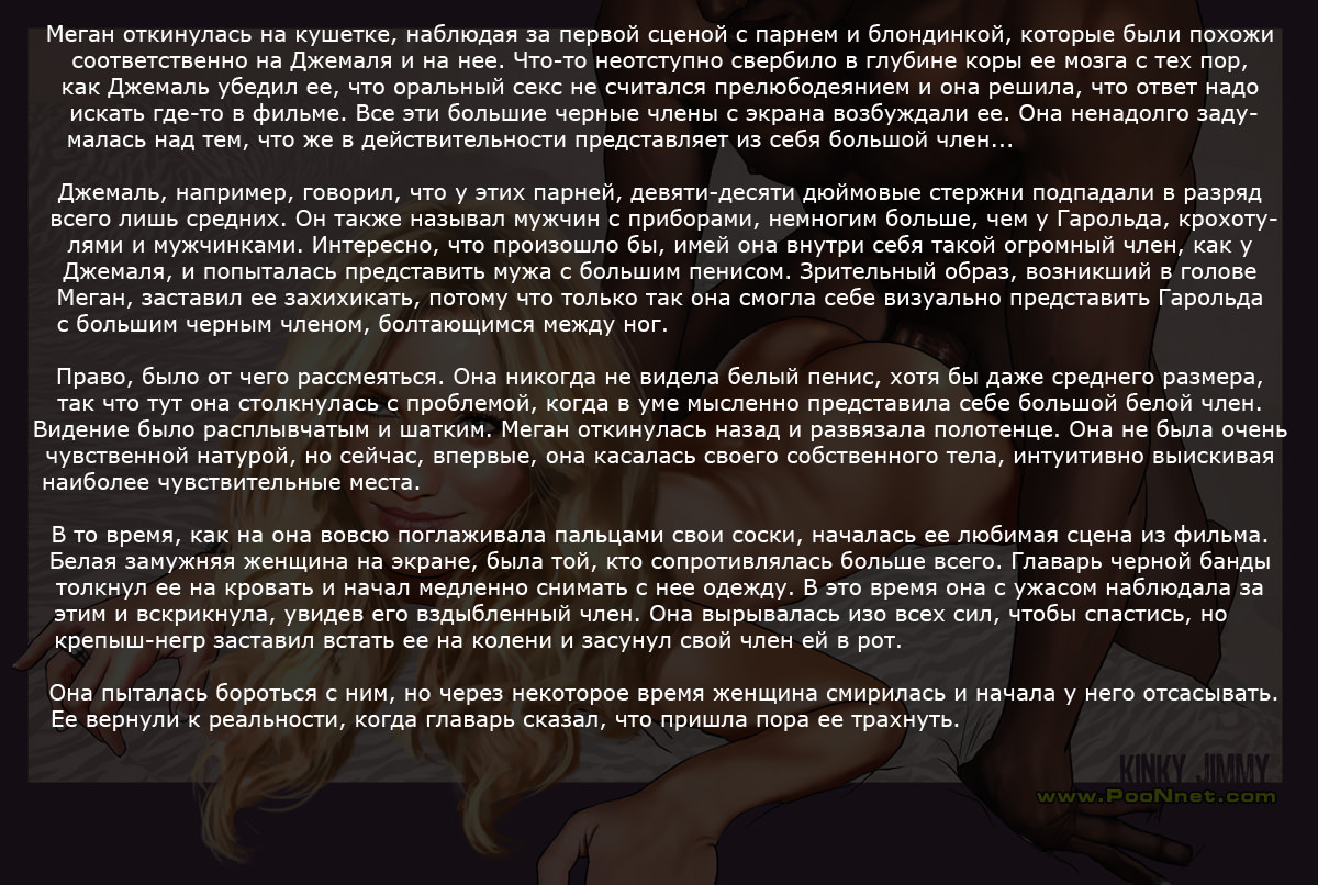 Настало время очередного урока для Меган — а все потому, что её скучный муженек по-прежнему не задает ей жару в постели. Меган отправляется к соседу Джамалу и застает его абсолютно голым — ну что ж, значит, он уже готов к обучению! Все началось с расспроса о нижнем белье, а закончилось очень интересным предложением от учителя — Джамал предложил Меган обучиться анальному сексу. Все могло пройти гладко, не будь член Джамала таким гигантским и толстым.