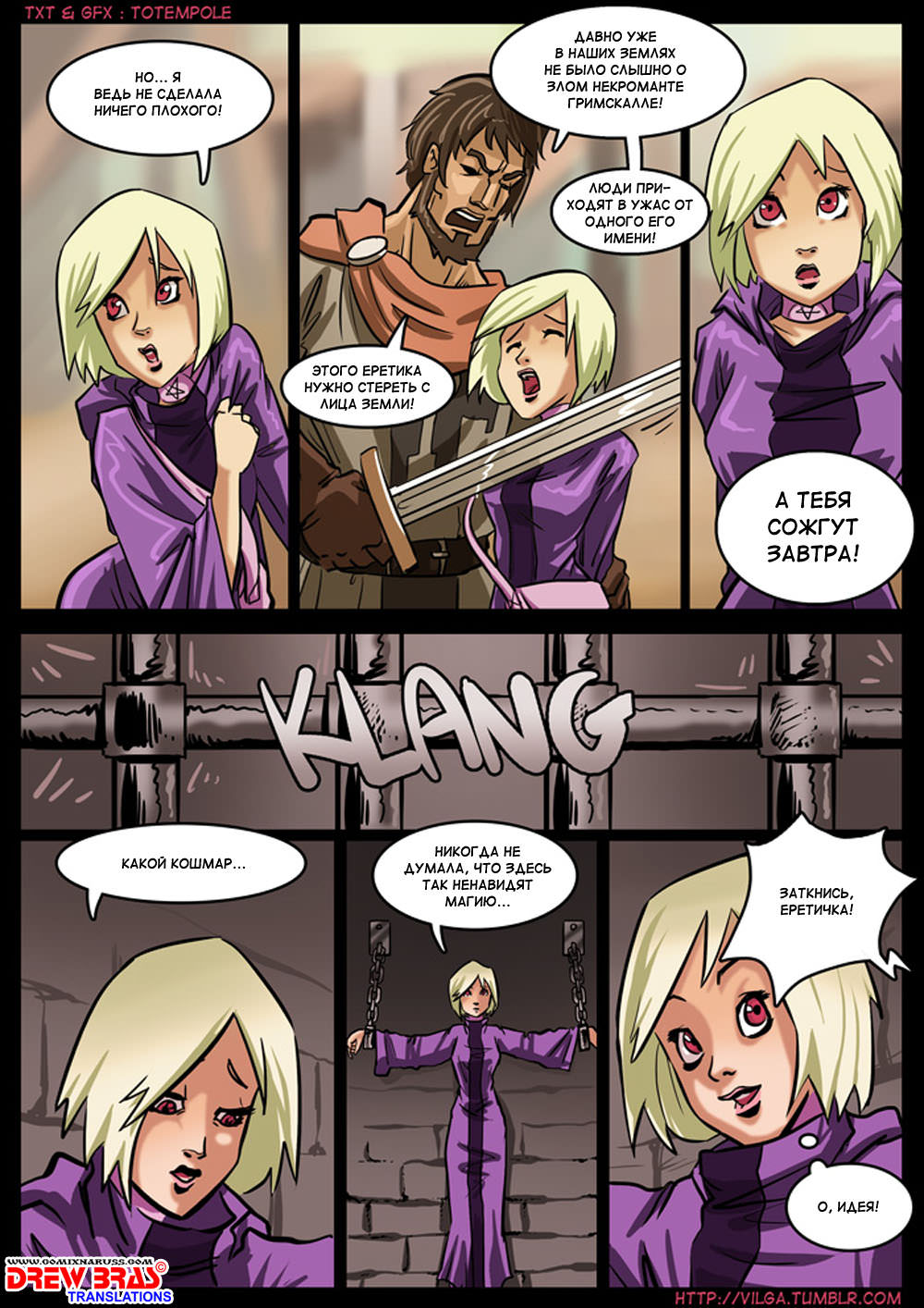 Сексапильная молоденькая волшебница-ученица великого мага Гримскалла пробирается в город, чтобы полюбоваться им и полакомиться мороженым. Ее замечает рыцарь Ордена священного ключа, который приходит в ярость, узнав, кто такая блондинка. Храбрый рыцарь решает завтра же сжечь привлекательную колдунью и помещает ее за решетку, надев кандалы. Однако, волшебница флиртует с охранником, чтобы спастись!