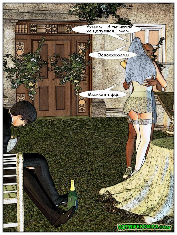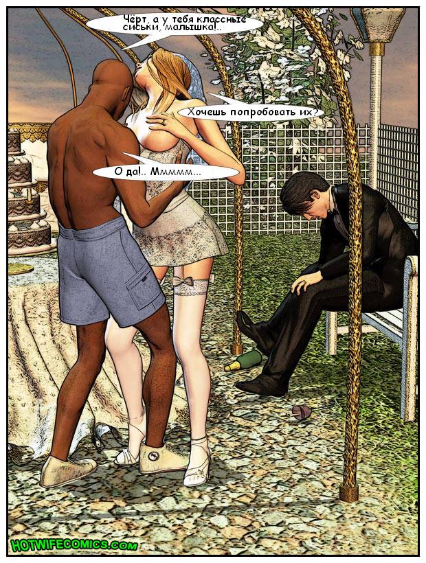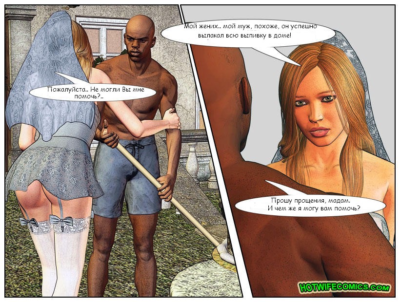 Белая красивая невеста пытается притащить своего вдрызг пьяного муженька со свадебной вечеринки, а тот только больше и больше набухивается. Трахалка спешит поскорее уехать из дома, где ее муженек пьянствовал весь день, но мен может только мычать и соглашаться уехать: на большее он просто неспособен.Невеста просит мускулистого парня-дворника помочь ей с мужем, но тот только разводит руками. И тут в голове у красотки мелькает замечательная мысль: а что если трахнуться с этим негром и отомстить, таким образом, мужу? Так шалава и делает!