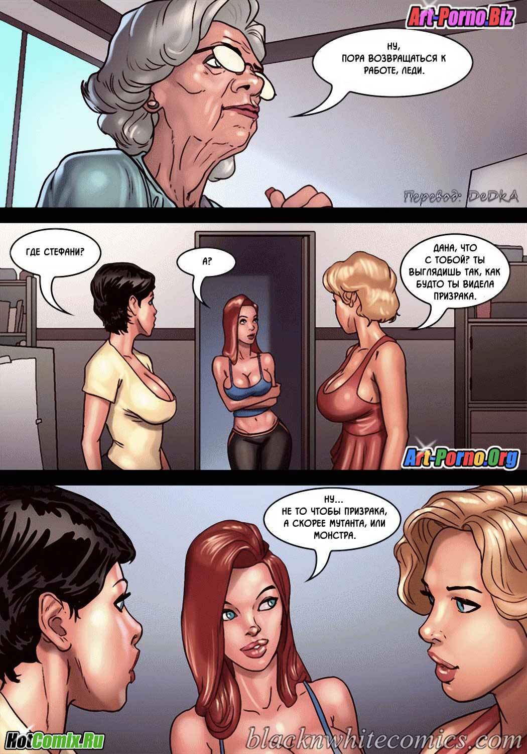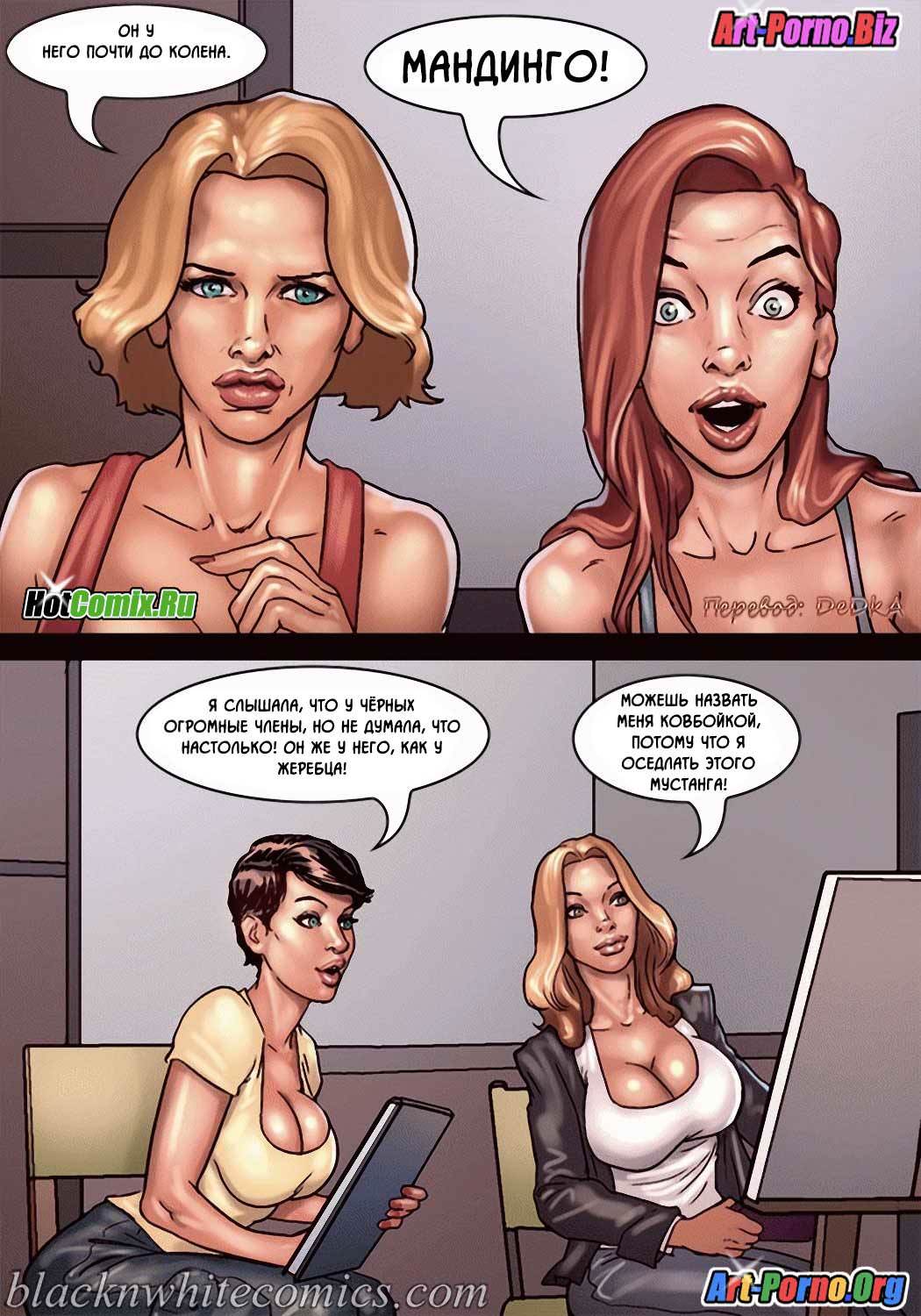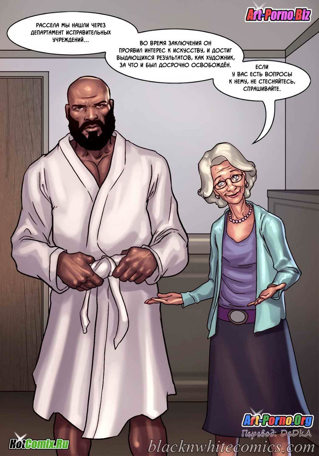 Четыре молоденькие фигуристые художницы никак не ожидали получить чернокожего качка Рассела, который только что вышел из тюряги, в качестве натурщика на ближайшие 4 недели. Девки открыто обсуждают его член до колен и то, будут ли они с ним спать или нет. Через какое-то время их престарелая бабулька-наставница приглашает каждую из девушек поближе познакомиться с Расселом в приватной комнатке, чтобы максимально глубоко проникнуться творческим настроением. И вот уже творчеством с Расселом занимается первая из шлюх…