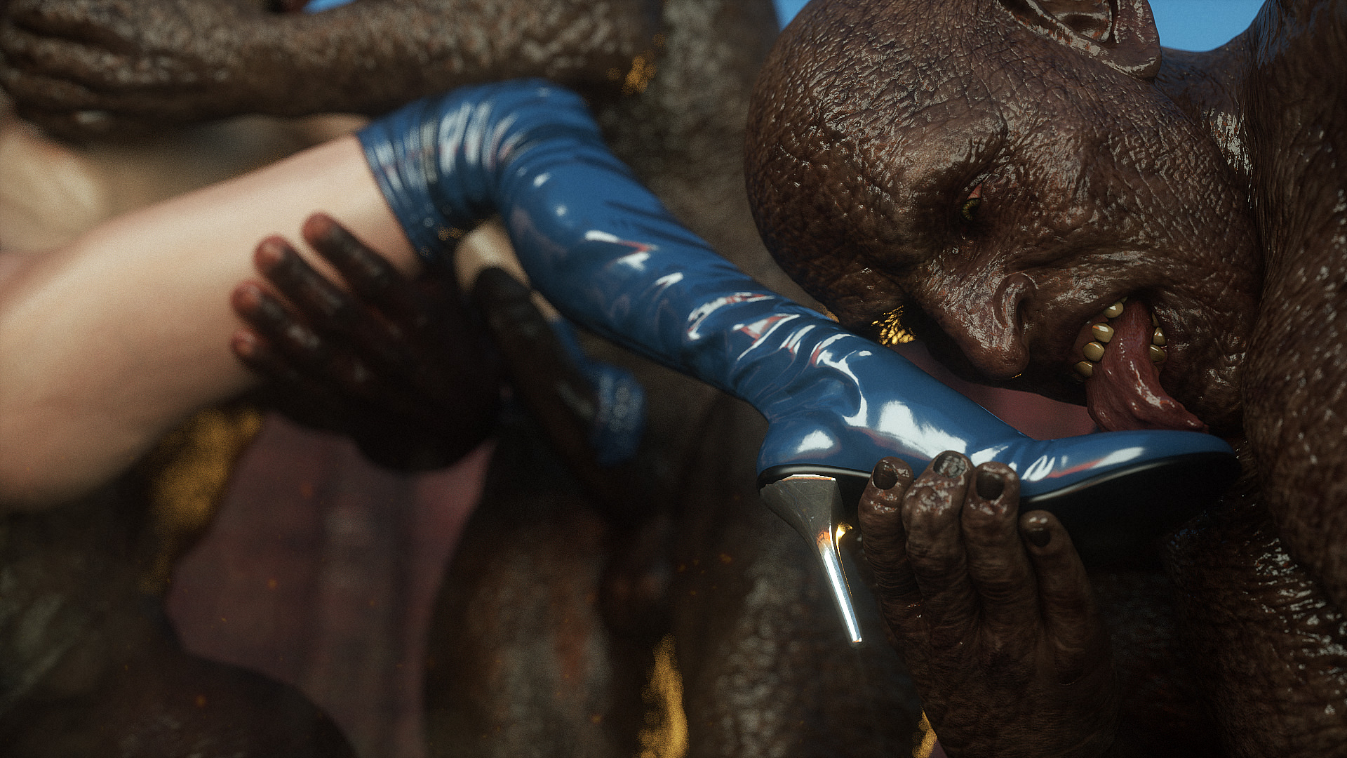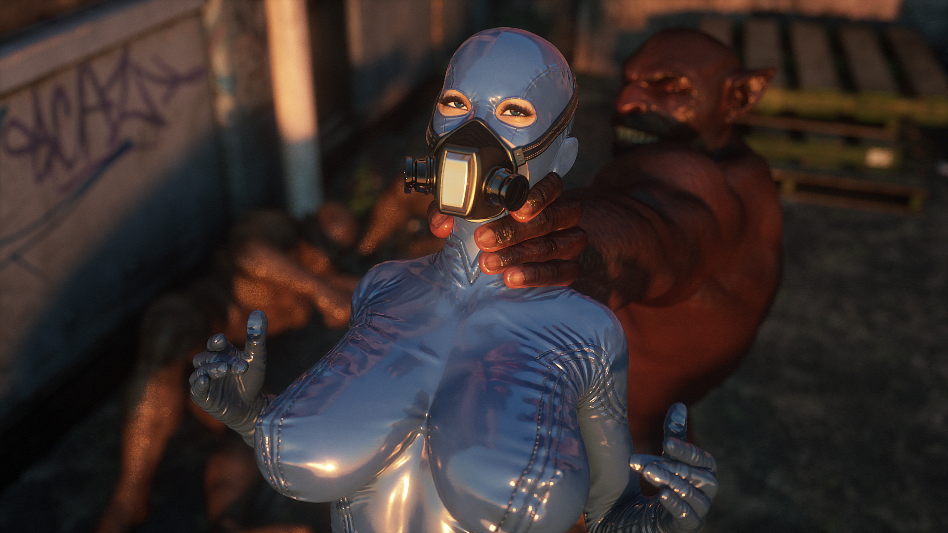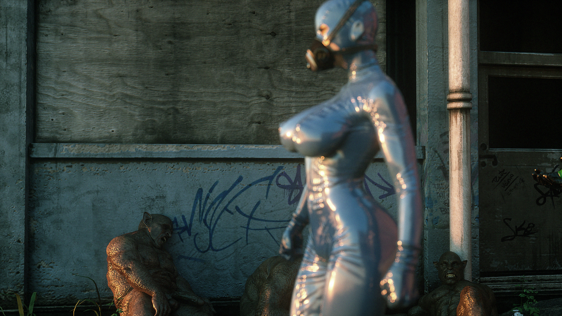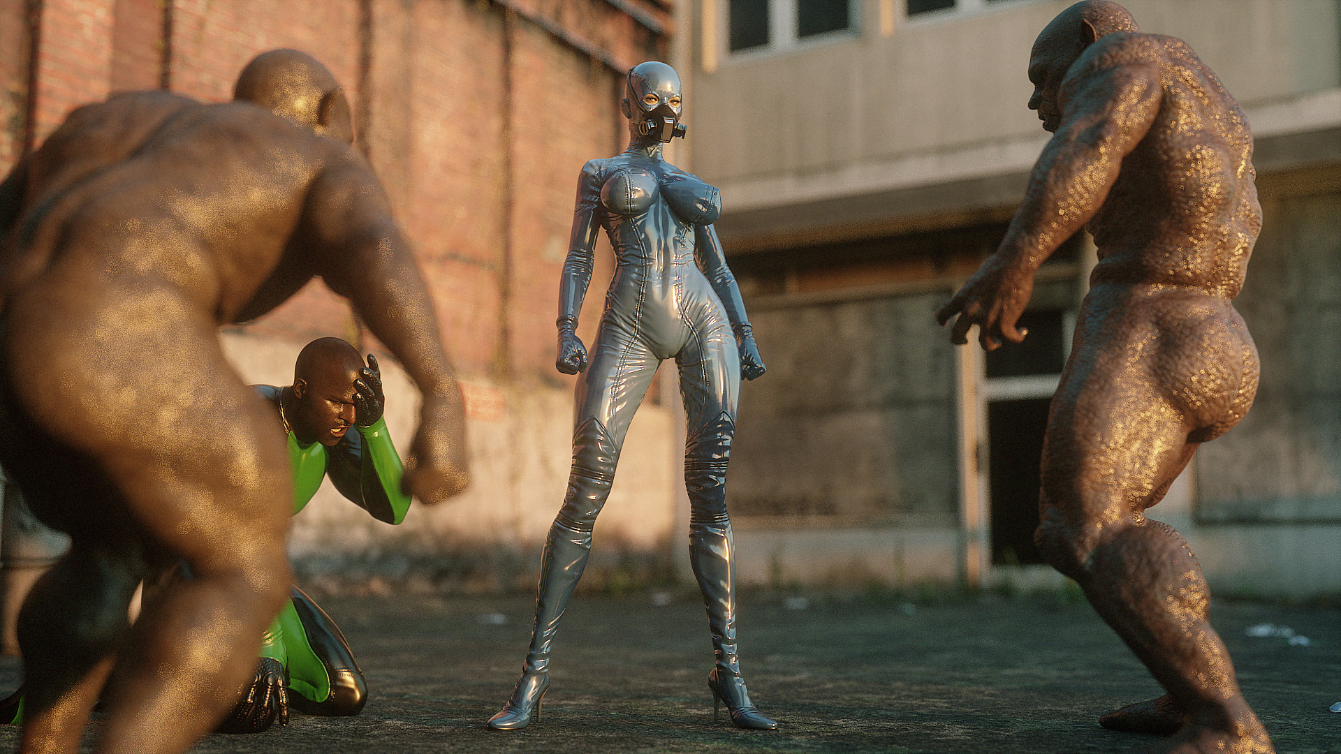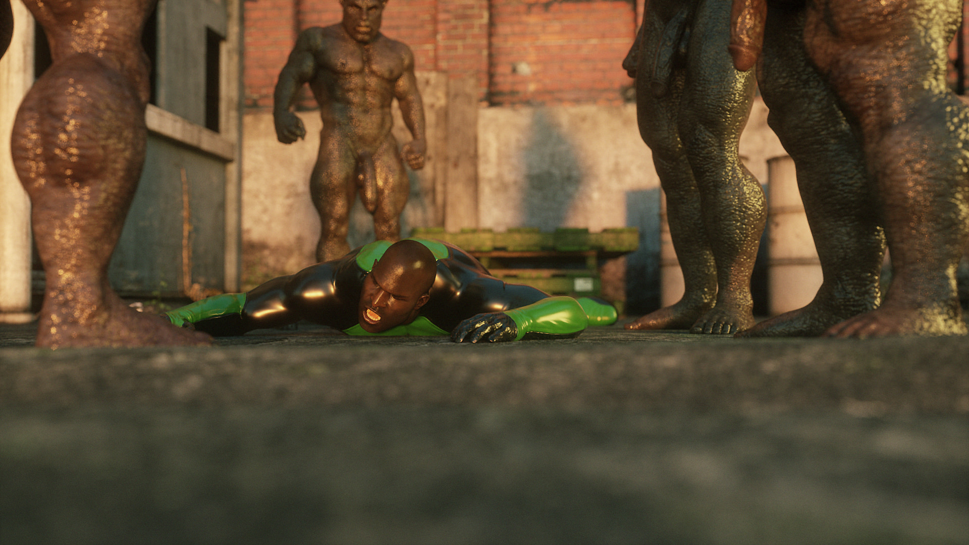 Наши герои попали в настоящую зону отчуждения- это место оккупировано гигантскими монстрами, жадными до плоти и крови. Нужны специальные костюмы из латекса, чтобы не заразиться опасным вирусом, но увы, даже костюм не защищает от всех опасностей. Напарник главной героини уже повержен, но девушка еще жива. Гигантские обнаженные монстры замечают ее и для начала снимают защитный костюм, а потом уже начинают проводить межрасовые секс-эксперименты.