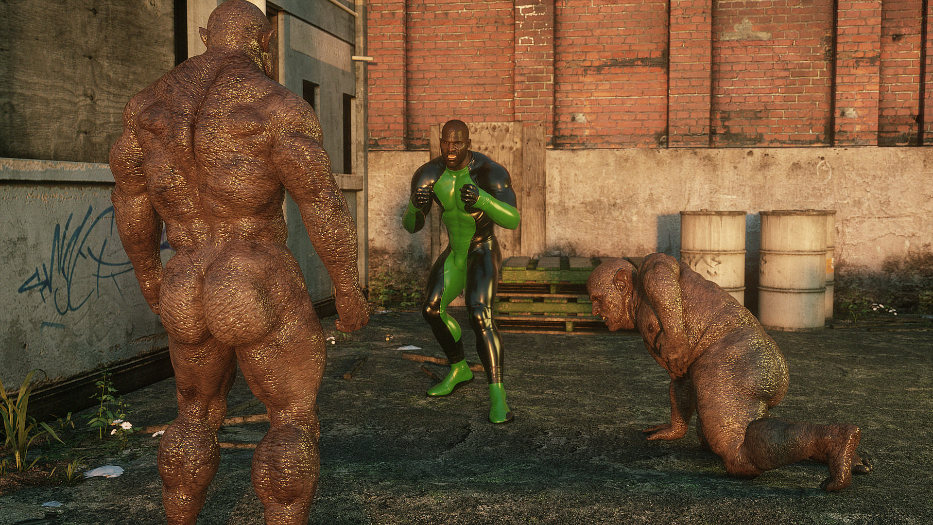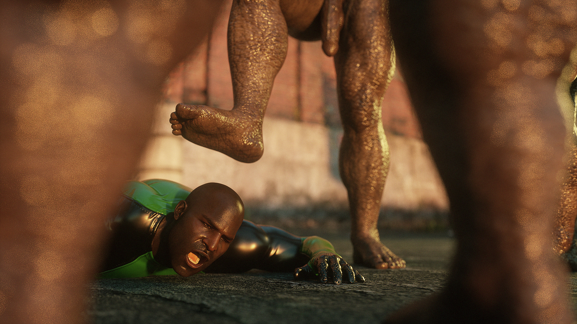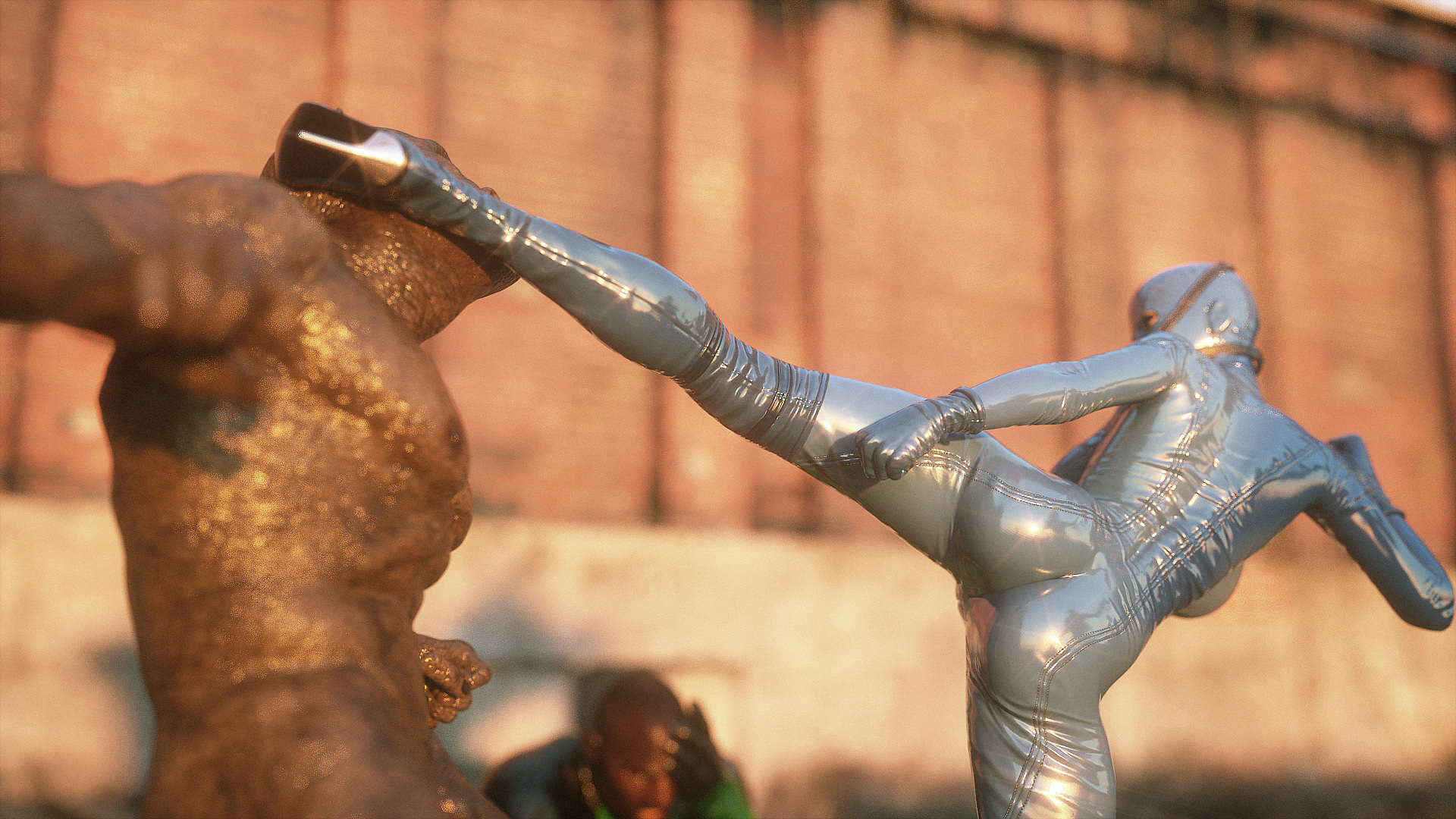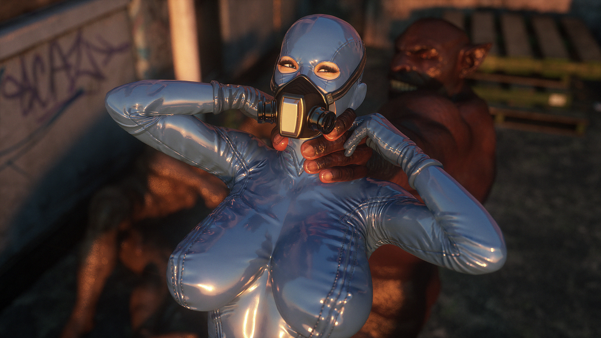 Наши герои попали в настоящую зону отчуждения- это место оккупировано гигантскими монстрами, жадными до плоти и крови. Нужны специальные костюмы из латекса, чтобы не заразиться опасным вирусом, но увы, даже костюм не защищает от всех опасностей. Напарник главной героини уже повержен, но девушка еще жива. Гигантские обнаженные монстры замечают ее и для начала снимают защитный костюм, а потом уже начинают проводить межрасовые секс-эксперименты.