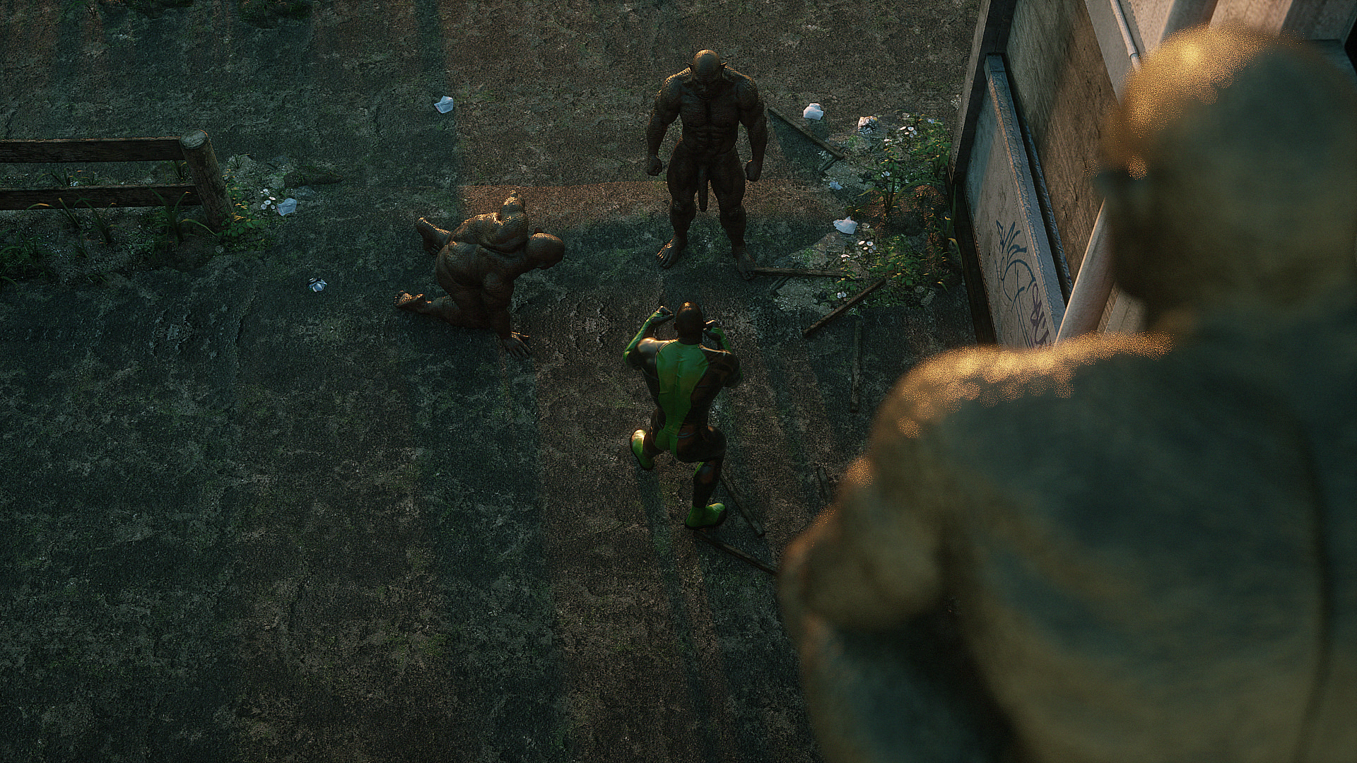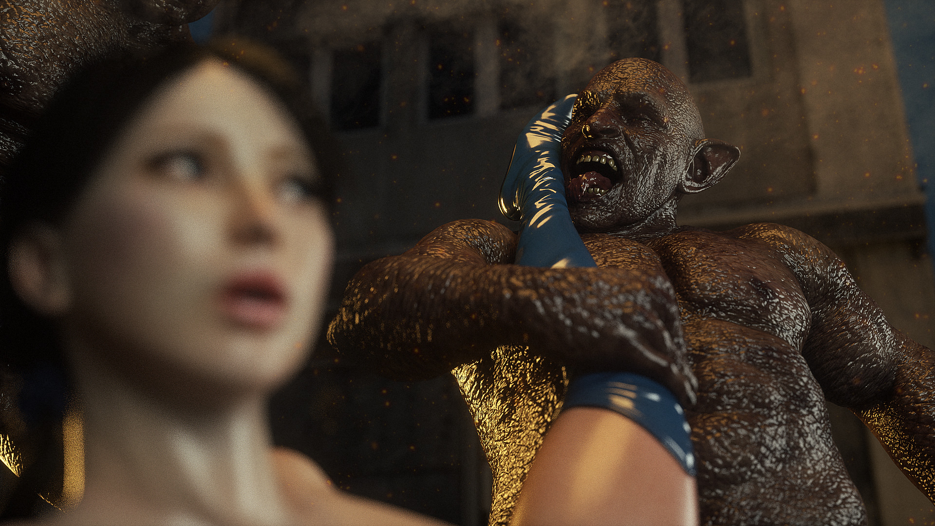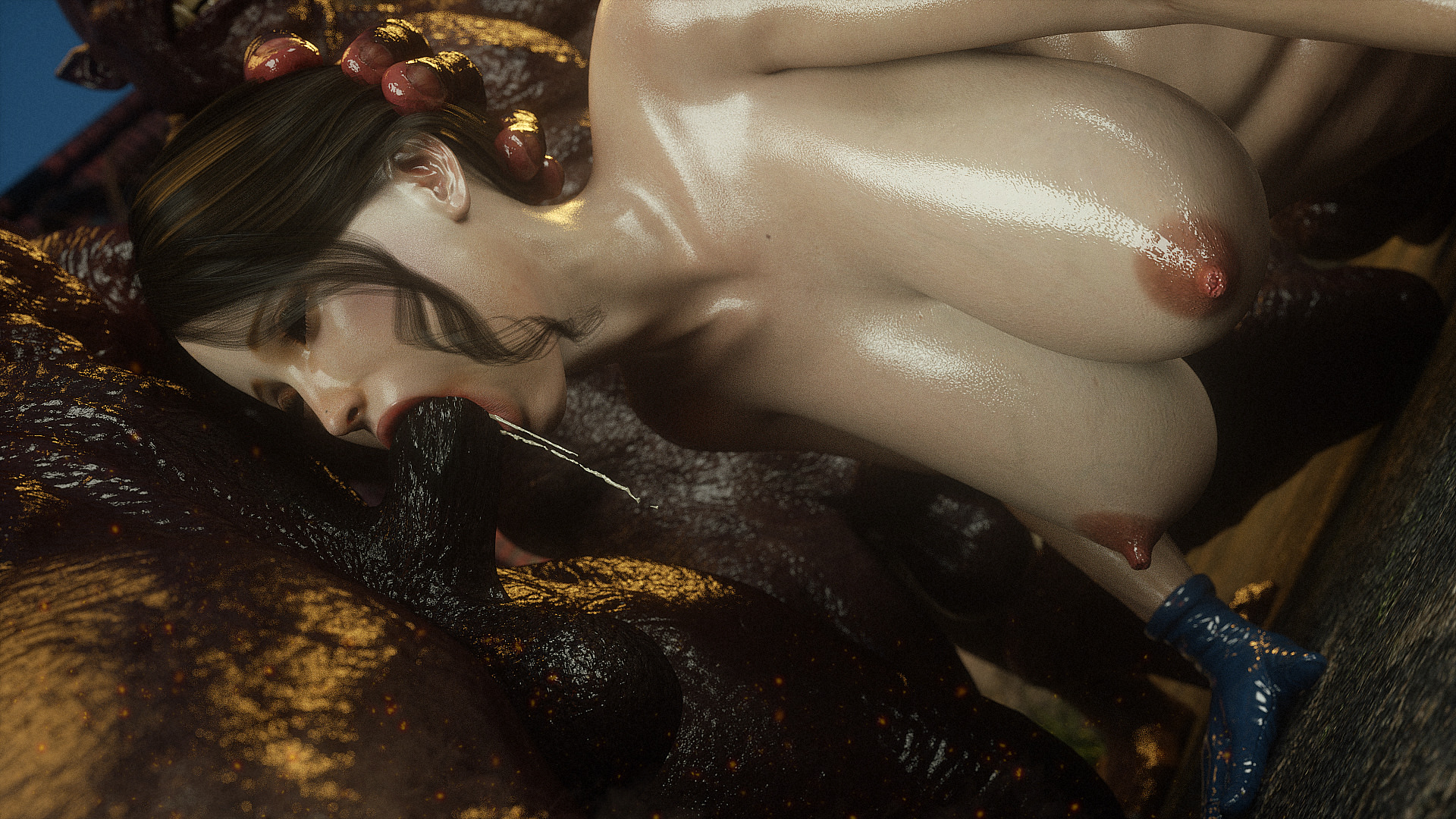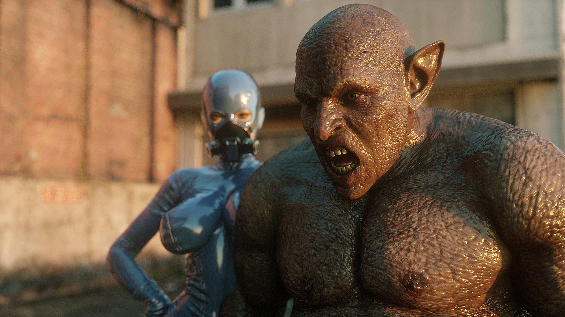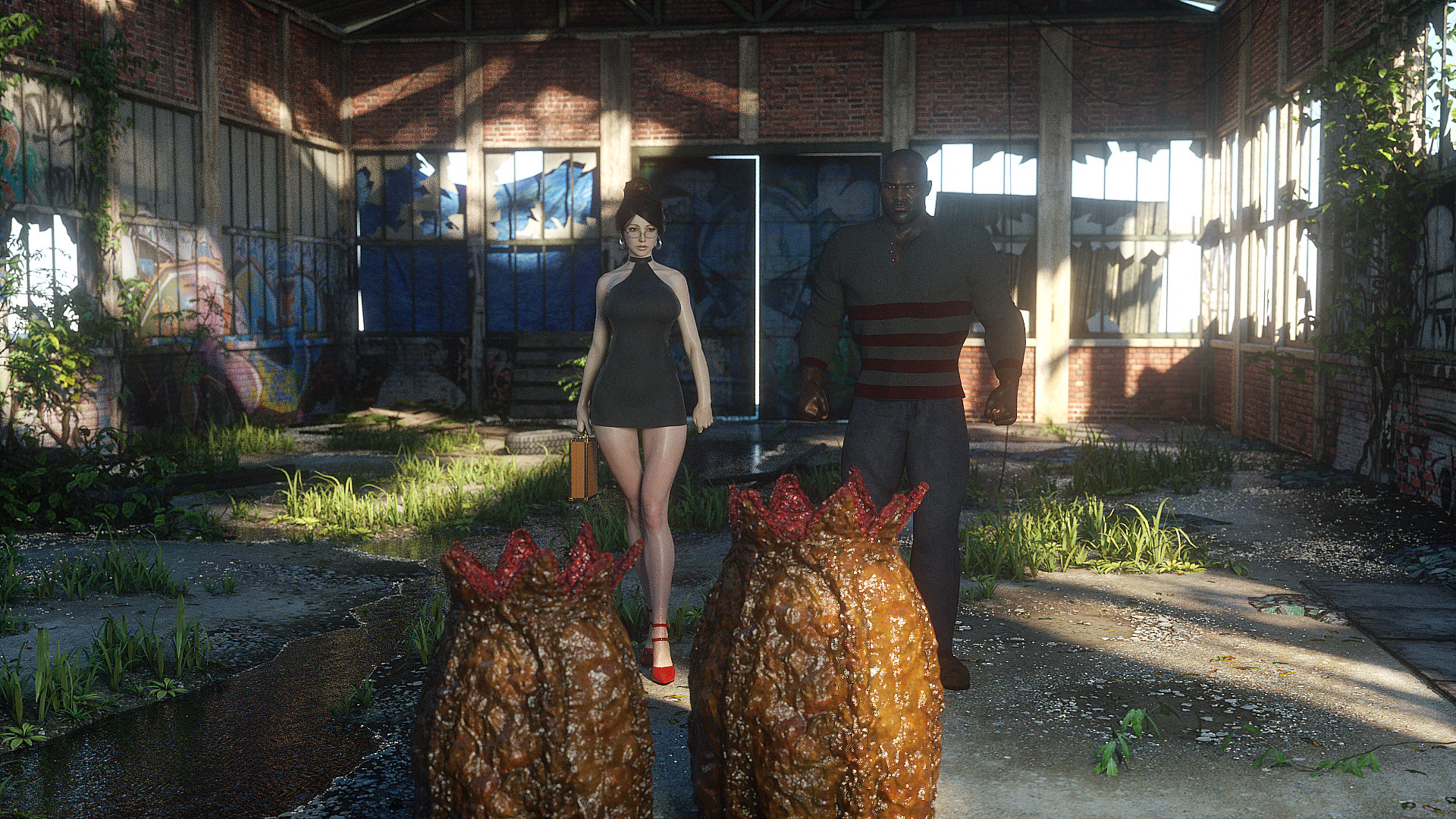 Наши герои попали в настоящую зону отчуждения- это место оккупировано гигантскими монстрами, жадными до плоти и крови. Нужны специальные костюмы из латекса, чтобы не заразиться опасным вирусом, но увы, даже костюм не защищает от всех опасностей. Напарник главной героини уже повержен, но девушка еще жива. Гигантские обнаженные монстры замечают ее и для начала снимают защитный костюм, а потом уже начинают проводить межрасовые секс-эксперименты.