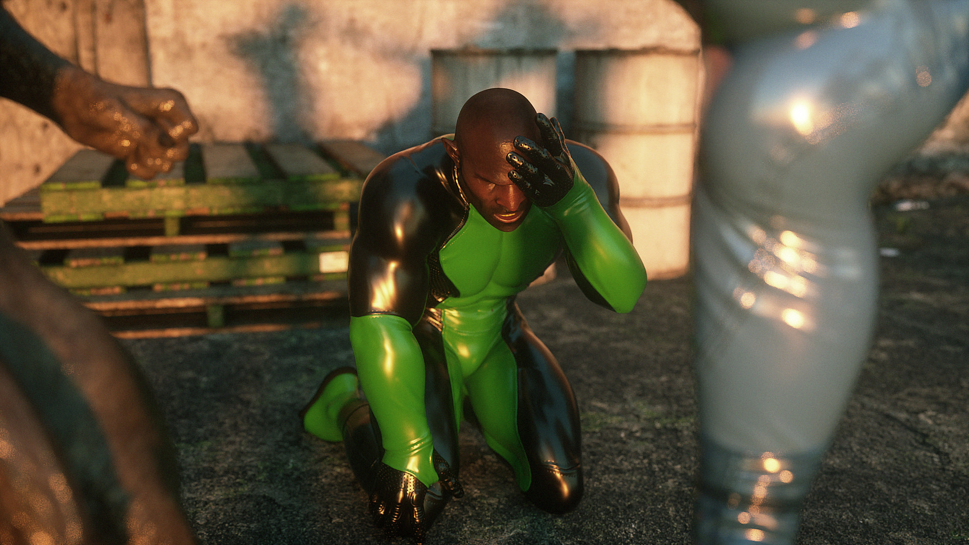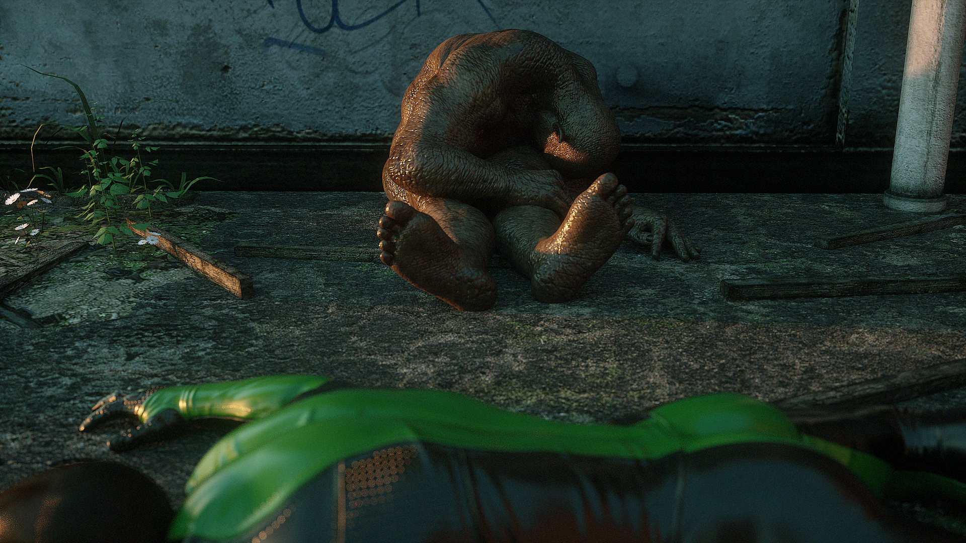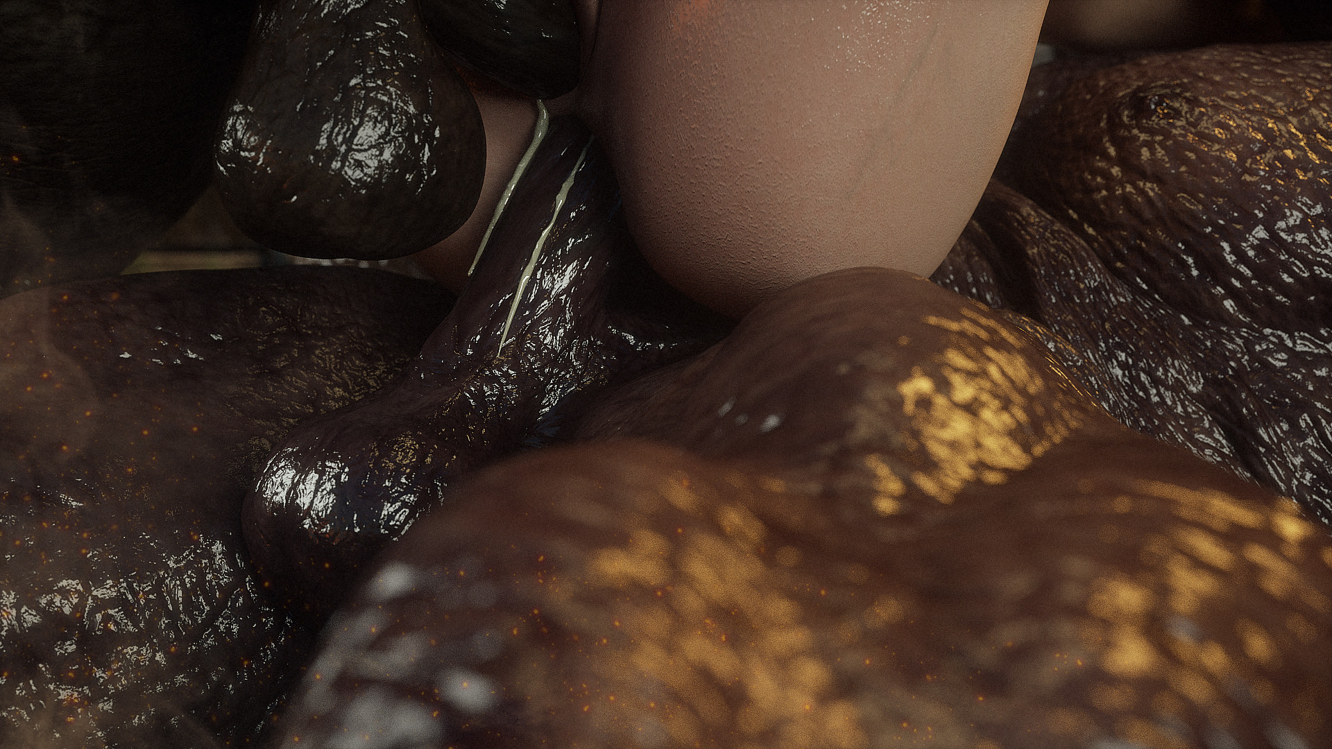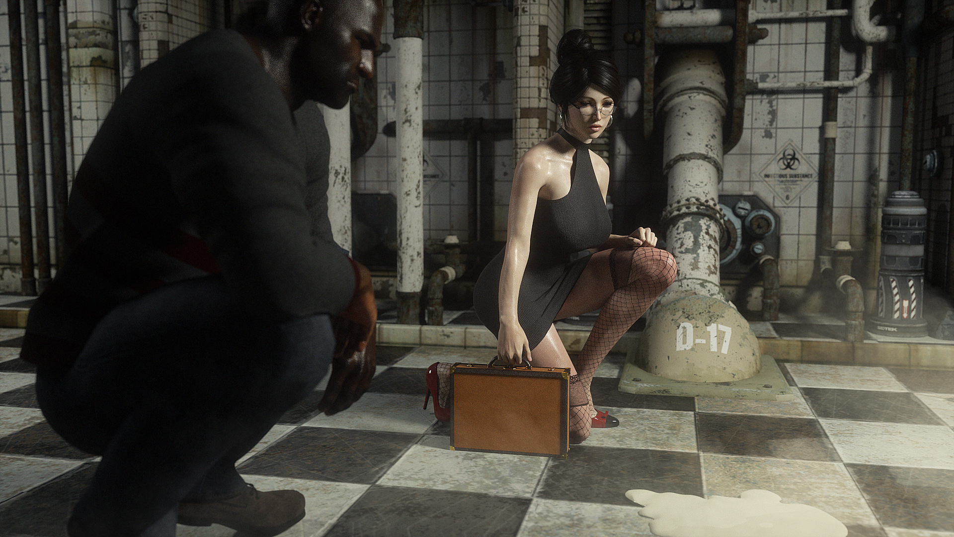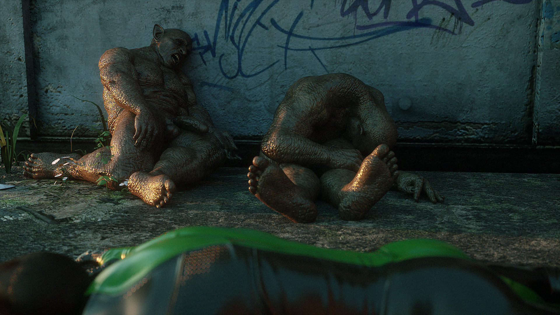 Наши герои попали в настоящую зону отчуждения- это место оккупировано гигантскими монстрами, жадными до плоти и крови. Нужны специальные костюмы из латекса, чтобы не заразиться опасным вирусом, но увы, даже костюм не защищает от всех опасностей. Напарник главной героини уже повержен, но девушка еще жива. Гигантские обнаженные монстры замечают ее и для начала снимают защитный костюм, а потом уже начинают проводить межрасовые секс-эксперименты.